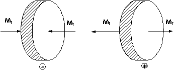Para la representaci�n de momentos torsores emplearemos indistintamente flechas curvas, que indican el sentido de giro, una l�nea perpendicular al eje de la barra con dos c�rculos en representaciones planas. En uno de ellos se coloca un punto que indica la salida de la flecha curva hacia el lector, y en el otro un aspa que significa que la flecha entra en el plano alej�ndose del lector.